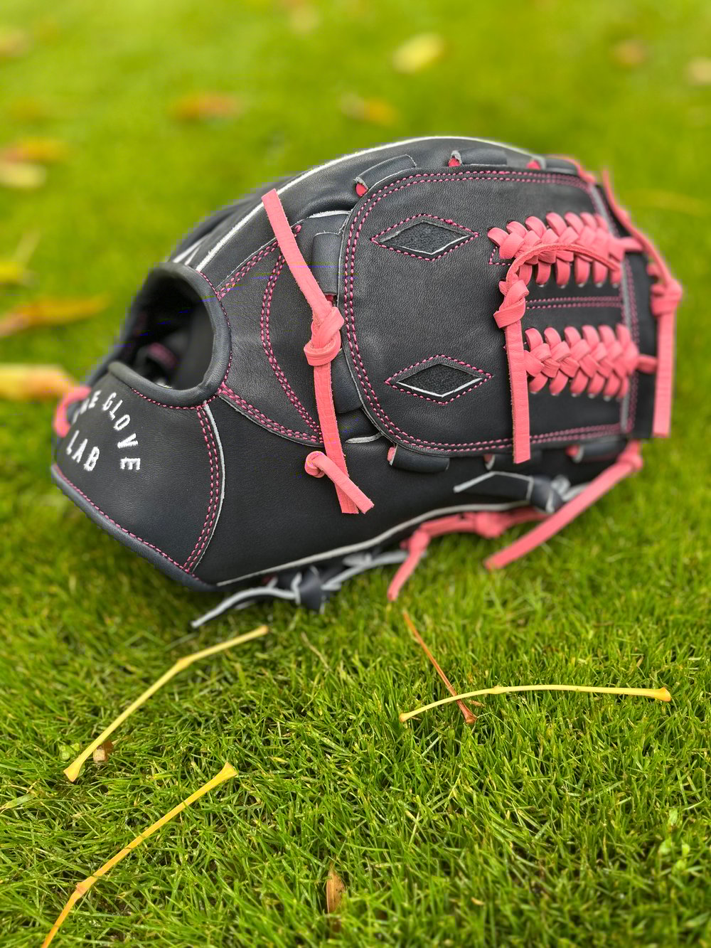 Our pitcher's model is constructed of Japanese tanned U.S. Steerhide, detailed with pink thread and pink laces. At 12" our pitcher's model offers great depth to hide the ball. Glove will arrive pro-stiff, break-in services available.