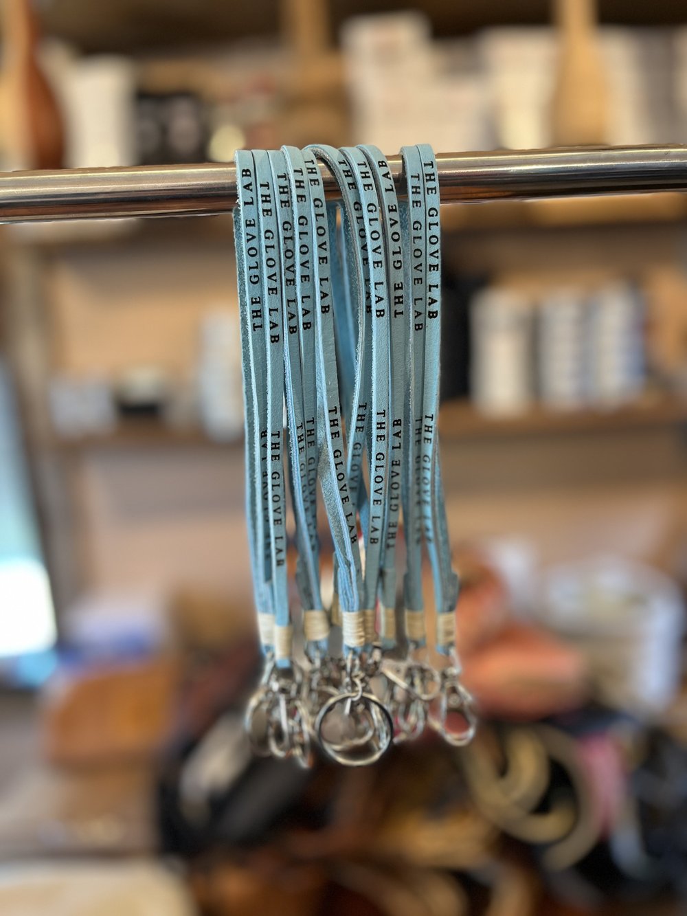 The perfect sized ball glove lace keychains are one of the best ways to keep your keys secure on your wrist or in your bag! Its also an easy way to spot your keys from across the room! Lace is 3/16" in Columbia blue and etched with THE GLOVE LAB on the lace.